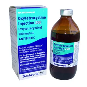 Norbrook® Oxytetracycline Injection 200 (oxytetracycline) is a sterile, ready-to-use solution for the administration of the broad-spectrum antibiotic oxytetracycline by injection. Each mL contains 200 mg of oxytetracycline base as amphoteric oxytetracycline. Oxytetracycline Injection 200 is intended for use in the treatment of the following diseases in beef cattle; dairy cattle; calves, including preruminating (veal) calves; and swine when due to oxytetracycline-susceptible organisms.