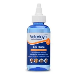 Use Vetericyn Plus Ear Care daily to maintain healthy, clean ears, and to reduce the risk of irritation. Our Vetericyn Plus Ear Care applicators and formula line were created with all types of ear shapes in mind. Based on advanced hypochlorous technology, Vetericyn Plus Ear Rinse is formulated at an appropriate pH level, and will not burn or sting. 4 Ounces.